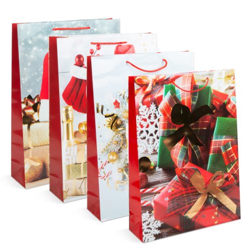 Karácsonyi ajándéktasak - papír - 330 x 102 x 457 mm - 4 féle / csomag - 12 db / csomag