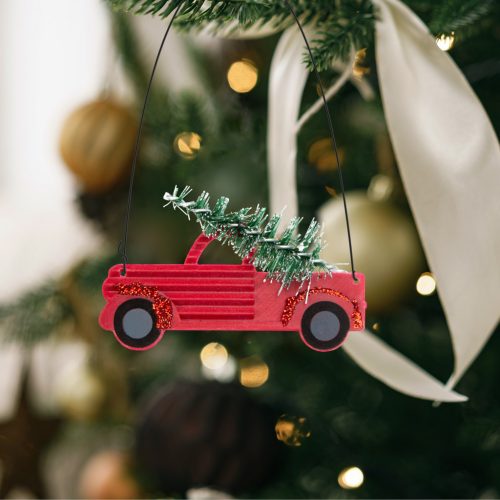 Az autózás szerelmeseinek nélkülözhetetlen karácsonyfadísze! A kisautó különleges megjelenésével és a tetején lévő fenyőfával biztosan feltűnést fog kelteni karácsonyfáján. A glitteres sárvédőívekkel rendelkező kisautó varázslatos látványt nyújt. Egy nagyszerű ajándék ötlet, amely bárkinek mosolyt csal az arcára!