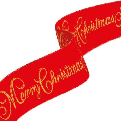 Szín: Piros szalag, arany színű "Merry Christmas" felirattal