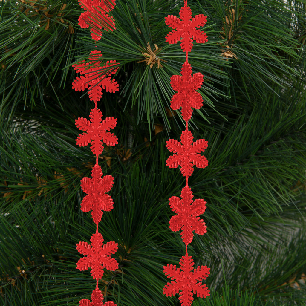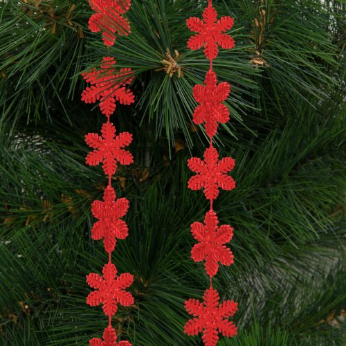 Karácsonyi girland - hópehely - 2,7 m - piros