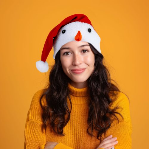Family 58962 Karácsonyi mikulás sapka - Hóember mintával - 30 x 45 cm