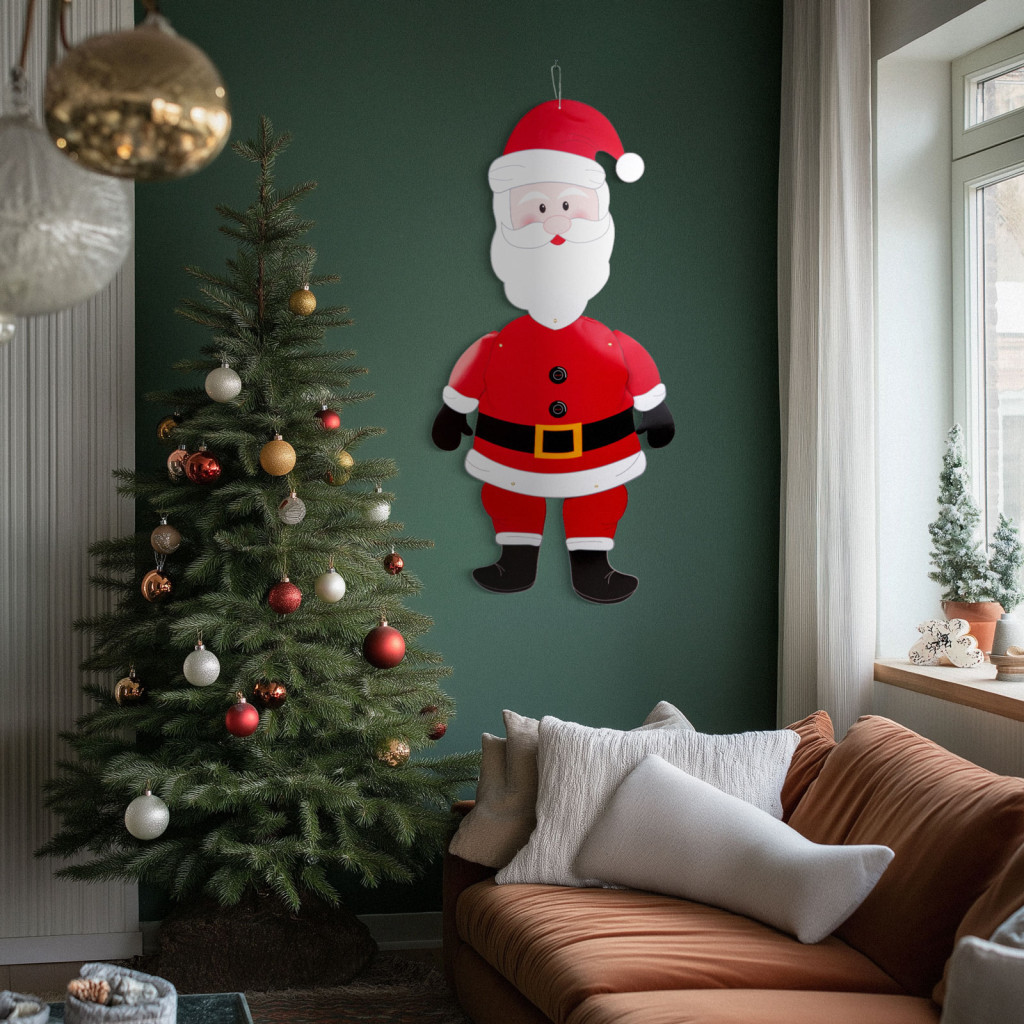 Dekorálja otthonát ezzel a nagyméretű, papírból készült Mikulással! Garantáltan feldobja a karácsonyi enteriőrt, végtagjai, feje mozgatható, tetszés szerint beállítható. 90 cm magas, felakasztható így ideális nagyobb terek díszítésére is. Kiválóan alkalmas a karácsonyi hangulat fokozására és kellemes meglepetést nyújt az ünnepi időszakban érkező vendégek részére is.