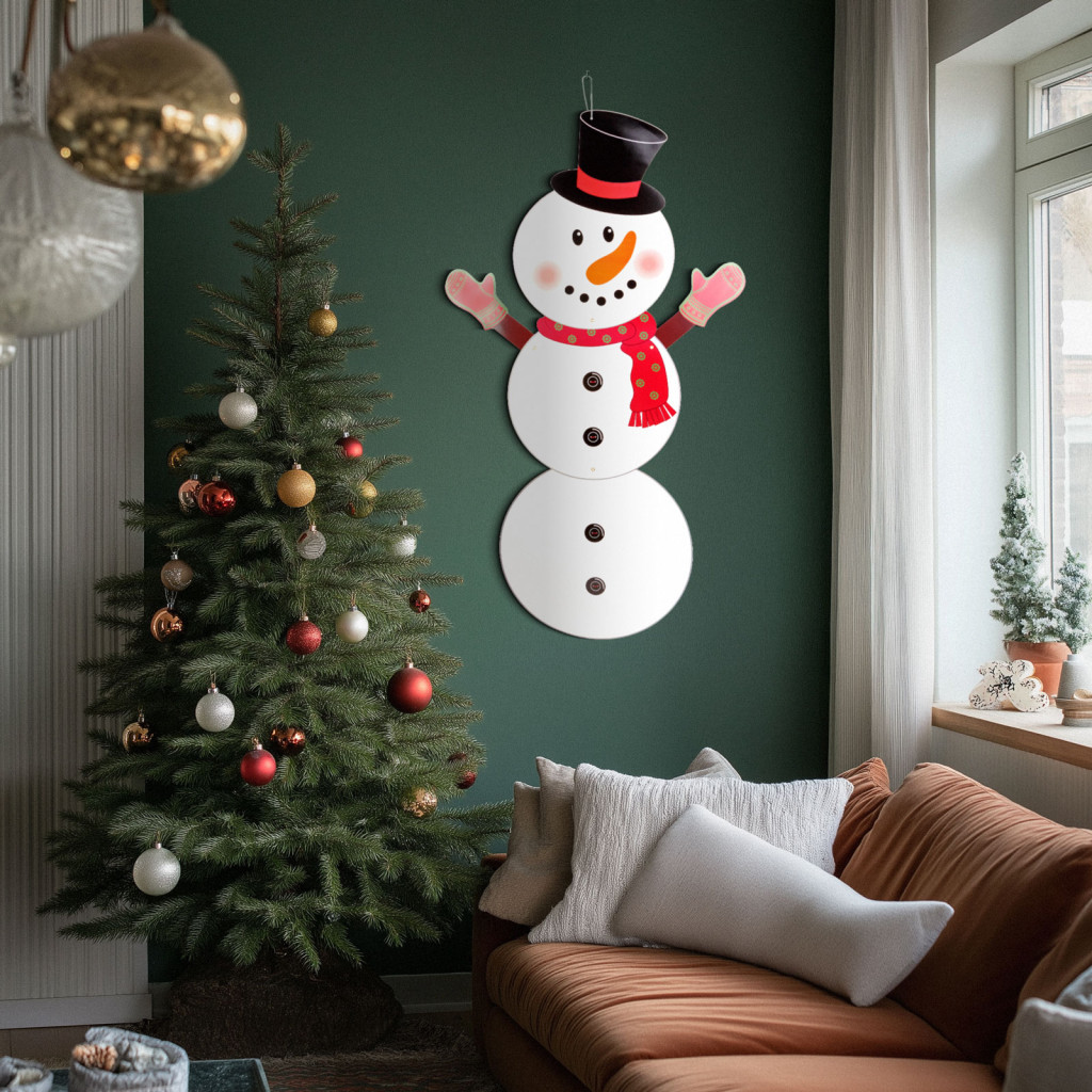 Dekorálja otthonát ezzel a nagyméretű, papírból készült hóemberrel! Garantáltan feldobja a karácsonyi enteriőrt, végtagjai, feje mozgatható, tetszés szerint beállítható. 90 cm magas, felakasztható így ideális nagyobb terek díszítésére is. Kiválóan alkalmas a karácsonyi hangulat fokozására és kellemes meglepetést nyújt az ünnepi időszakban érkező vendégek részére is.