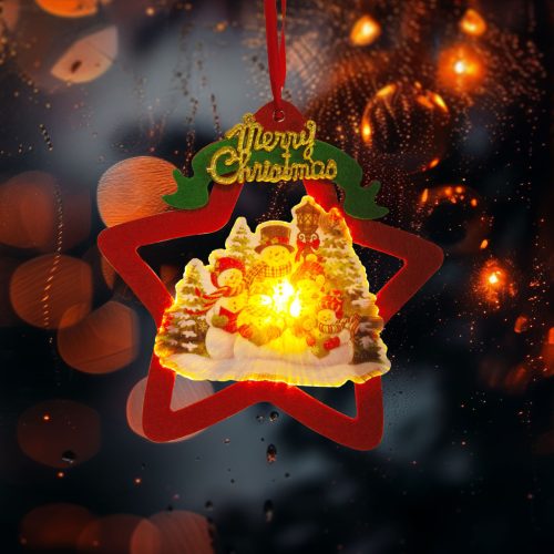 LED-es ablakdekor - melegfehér LED - csillag, hóember - tapadókorongos