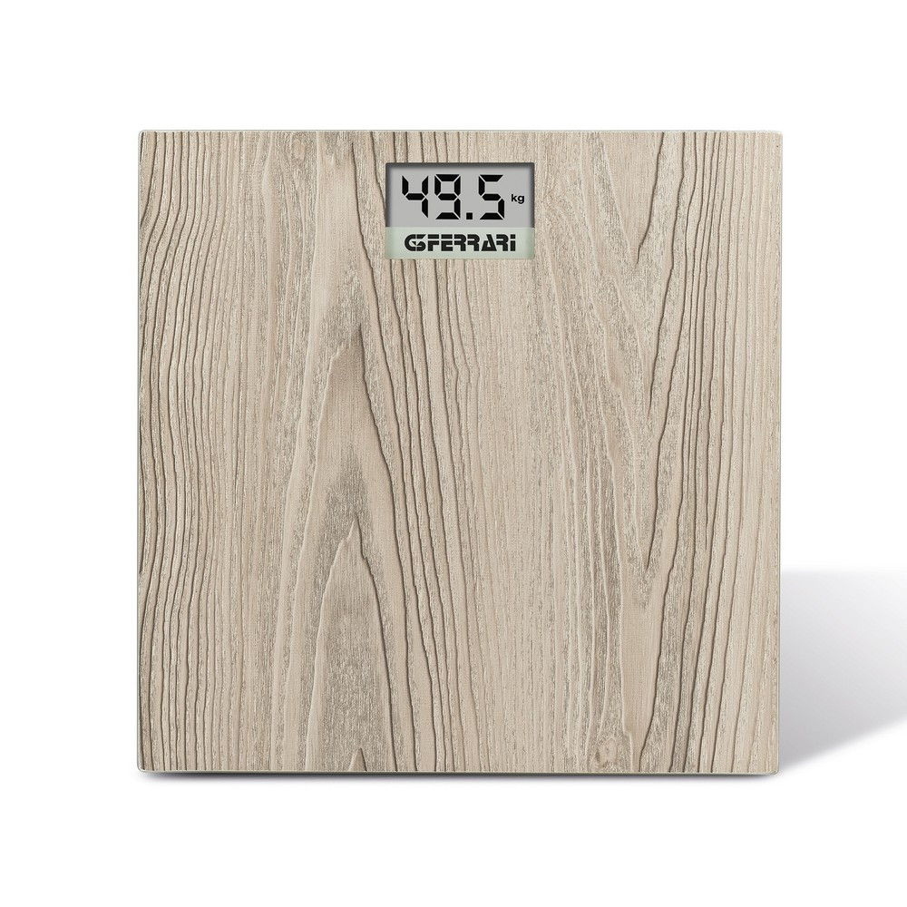 A G3Ferrari ROVERE egy stílusos és modern személymérleg, amely edzett üveglappal és fehérített tölgyfa hatású 3D grafikával rendelkezik. Az extra nagy LCD kijelző segíti a könnyű leolvashatóságot, míg az automatikus be- és kikapcsolás biztosítja a kényelmes használatot.