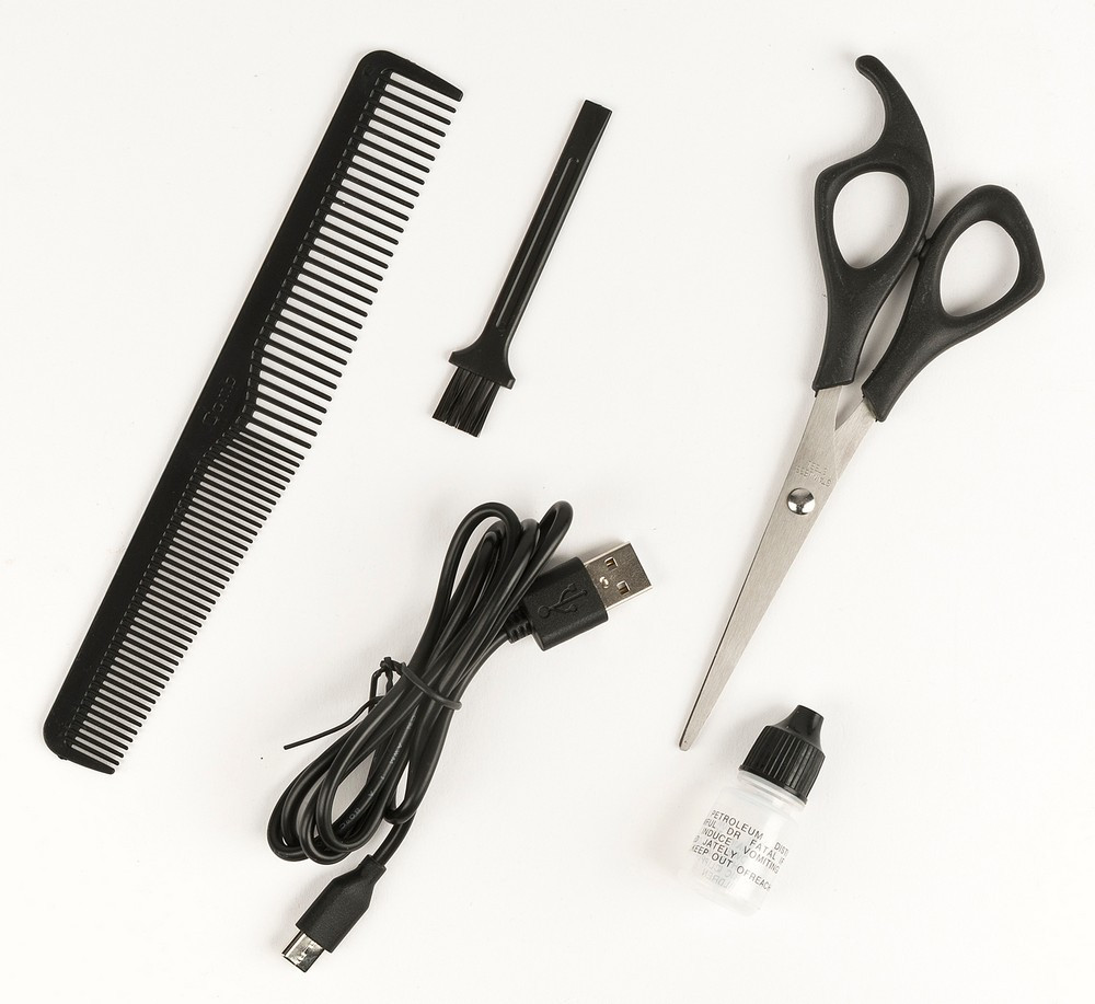 Tartozékok: 4 fésű, olló, fésű, USB-kábel, olaj