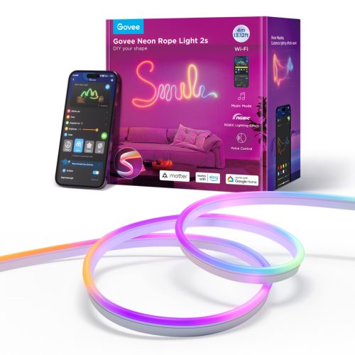 Alakfelismerés: Ez az új generációs Govee neonlámpa testre szabható fényhatásokat tartalmaz a Govee Home App alkalmazáson keresztül.