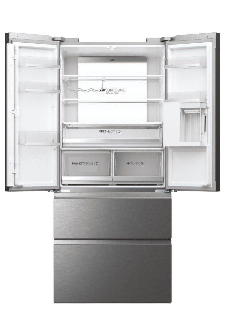 A 83 cm széles Haier lenyűgöző francia ajtós hűtőszekrényei forradalmi Fresher Tech® hűtési technológiáink legjavát egyesítik, az energiahatékonyságuknak és a precíziós ergonómiai tervezésüknek köszönhetően minden konyha tökéletes kiegészítői lesznek, miközben hosszabb ideig megőrzik az élelmiszerek frissességét. A Haier FD 83 Series 7 hűtőszekrény termékcsalád tagjai garantálják az élelmiszerek tökéletes tartósítását a speciális zónáknak köszönhetően, amelyek szabályozzák a hőmérsékletet és/vagy a páratartalmat az élelmiszerek hosszabb megőrzése érdekében, valamint az egyéb hűtési és tartósítási megoldásoknak köszönhetően.