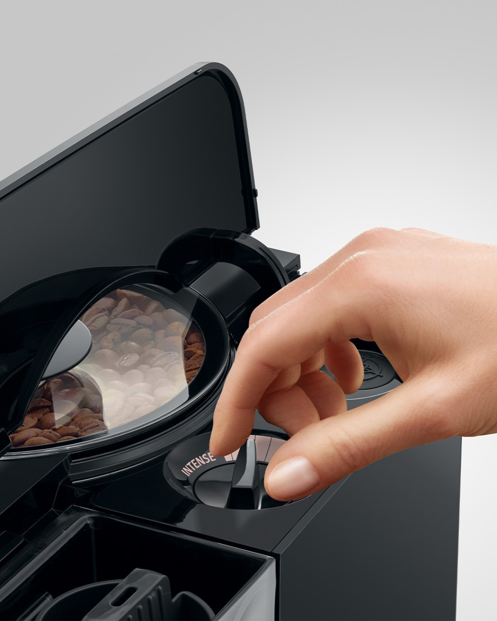 A domború-homorú előlapi kialakítás igazán figyelemfelkeltő dizájnelem. A víztartály és a csészetartó rács is a hullámformát követi, így a gép elegáns és időtálló megjelenést kap. Harmonikus formavilág, amely a prémium szegmensből ered.