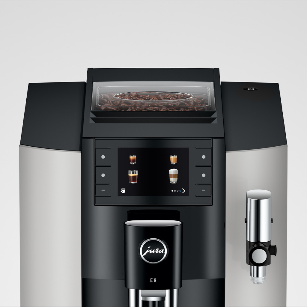 A P.A.G.2 (Professional Aroma Grinder 2.) őrlőnek köszönhetően a kávébabok mindig frissen őröltek, míg a fejlett főzési technológia biztosítja, hogy a kávé optimális körülmények között kerüljön lefőzésre. A kávé kiválasztása közvetlen és intuitív, mivel a nagy szimbólumokkal ellátott 3,5"-os érintőkijelző nagyon könnyen kezelhető. A prémium szegmens számos funkciójával felszerelt E8 hosszú távon is megőrzi értékét.