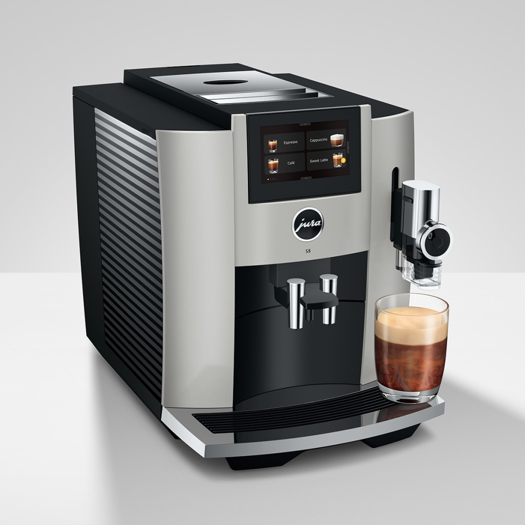 A stílusos S8 a kávérajongóknak és esztétáknak egyaránt örömet okoz. Szoborszerű kialakításával, kiváló minőségű anyagaival és első osztályú kidolgozásával első pillantásra kitűnő ízlésről tesz tanúbizonyságot. Az innovatív technológia új lehetőségeket nyit a tökéletes élvezethez.