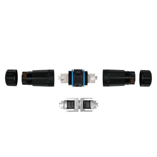 A LogiLink kültéri kábelcsatlakozója IDC mezővégződéssel kiváló védelmet nyújt a zord környezettel szemben. A tömszelence-csatlakozó mechanizmussal ellátott ház fokozott védelmet nyújt a csatlakozórendszer számára a szennyeződések és a nedvesség ellen (IP68 besorolás). Ezenkívül ez a termék fokozott mechanikai stabilitást, hőmérsékletállóságot, rezgésállóságot, valamint EMI- és UV-sugárzás elleni védelmet biztosít. Tulajdonságok Kábelhosszabbító kültéri és ipari használatra Szerszám nélküli IDC-csatlakozás, alkalmas AWG 26-tól AWG 22-ig terjedő körkábelekhez Alkalmas Cat.6A, Cat.7, Cat.7A és Cat.8 körkábelhez Kábeltömszelence ház, PA 66 Vízálló, IP68 6-9 mm-es kábelátmérőhöz Működési hőmérséklet: -20 C 68 C PoE, PoE+ és PoE++ alkalmazásokhoz alkalmas Menet mérete: M23x1,5