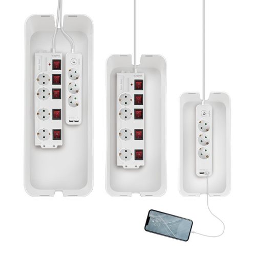 Tűnjön el minden kábelrendetlenség a LogiLink praktikus kábeldobozaiból. A három különböző méretű kábeldobozból álló készlet biztonságot, rendet és könnyű tisztítást biztosít. Az otthon és az iroda egy pillanat alatt sokkal rendezettebbnek tűnik, és a tápkábelek sem porosodnak be. Különösen alkalmas íróasztal, TV-rendszerek stb. mellé. Tulajdonságok Összeakadt kábelek elrejtésére A műanyag dobozkészlet 3 méretből áll Kábelnyílás mindkét oldalon Rendezett irodához és rendezett otthonhoz Méretek: 235x115x120 mm; 320x135x127 mm és 407x157x134 mm Szín: fehér