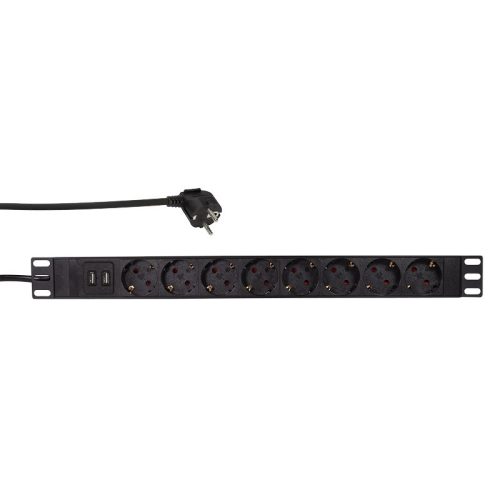 Logilink 19" PDU 8-as CEE 7/3 + 2x USB-A, túlterhelés elleni védelemmel (PDU8C02)