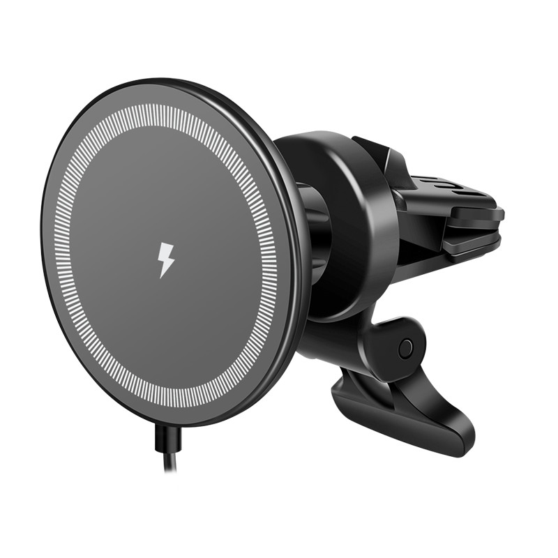 Mágneses okostelefon tartó nagy sebességű vezeték nélküli töltéssel Töltse fel iPhone és Qi-kompatibilis eszközeit akár 15 W-tal Alkalmas iPhone 15/14/13/12 sorozathoz (MagSafe vagy MagSafe tokkal) Alkalmas iPhone 11, X, 8, SE 2/SE 3 sorozat, Samsung, LG, Google, HTC és más Qi-képes Android mobiltelefonokhoz fémgyűrűvel Bemenet: USB-A port, 5 V/3 A (15 W), 9 V/2 A (18 W) Vezeték nélküli töltési kimenet: 5 W, 7,5 W, 10 W, 15 W max. Teherbírás: 0,5 kg-ig Kompatibilitás: WPC Qi 1.2.4 szabvány és A11 tekercs Védelem: Túlfeszültség Méretek: 8 x 7,5 x 6,05 cm (kábel nélkül) Fekete szín Általános termékadatok: Súly: 0,078 kg Magasság: 8 cm Szélesség: 7,5 cm Hossza: 6,05 cm