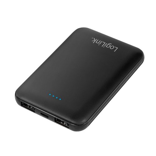 Logilink Power bank 5000 mAh, 2x USB-A, vékony, fekete (PA0202)