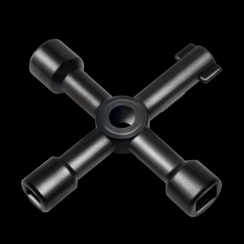 Többfunkciós 4 utas kulcs műszaki telepítésekhez Kapacitás négyzet: 6 és 8 mm Kapacitás duplabites kulcs: 5,5 mm Kapacitás háromszög: 10 mm Anyag: cink ötvözet Szín: fekete