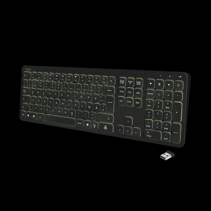 Logilink vezeték nélküli billentyűzet szivárványszínű háttérvilágítással, 2,4 GHz (ID0209)