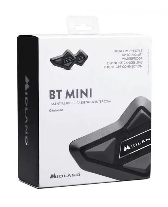 A Midland BT Mini Twin vezeték nélküli motoros intercom ideális megoldás motorosok számára, akik vezeték nélküli kommunikációt keresnek vezető és utas között. Bluetooth 4.2 technológiával, zajszűrő rendszerrel és vízálló kialakítással biztosít megbízható kapcsolatot akár 400 méteres távolságig.