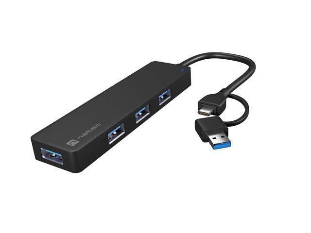 Natec Mayfly USB Type-C-rol 4 USB 3.0 HUB + USB-A adapter, fekete