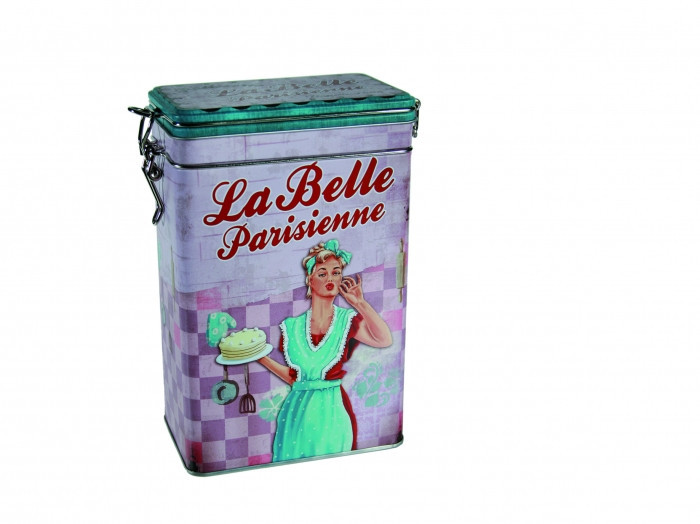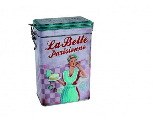 OOTB 101904 Vintage Fém Kávé, Kakaó, Süteményes Doboz Zárható Fedéllel, 19x12cm, Betty