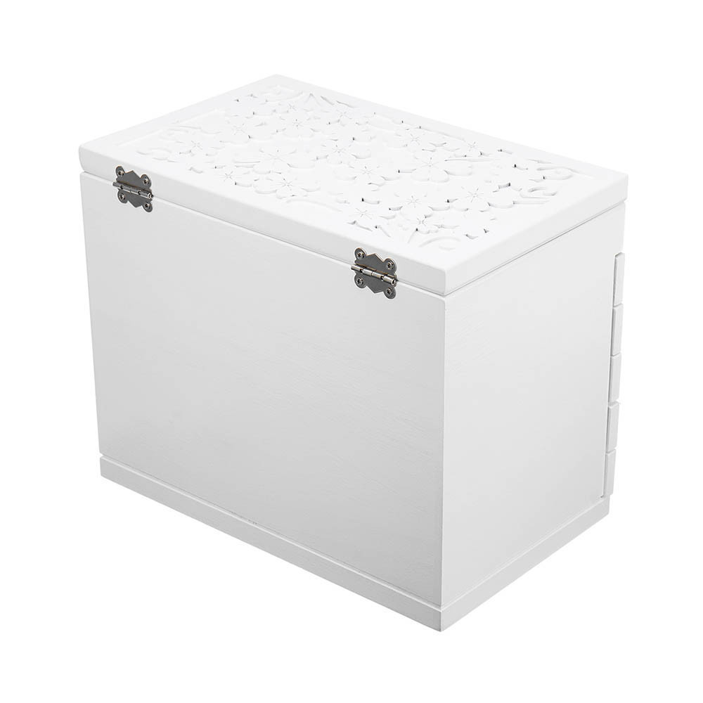 Letisztult fehér színének és klasszikus kialakításának köszönhetően ez az ékszertartó bármilyen enteriőrbe könnyen beilleszthető. A fésülködőasztalon, egy komódon vagy polcon elhelyezve nemcsak praktikus tárolóként, hanem dekorációs elemként is megállja a helyét.