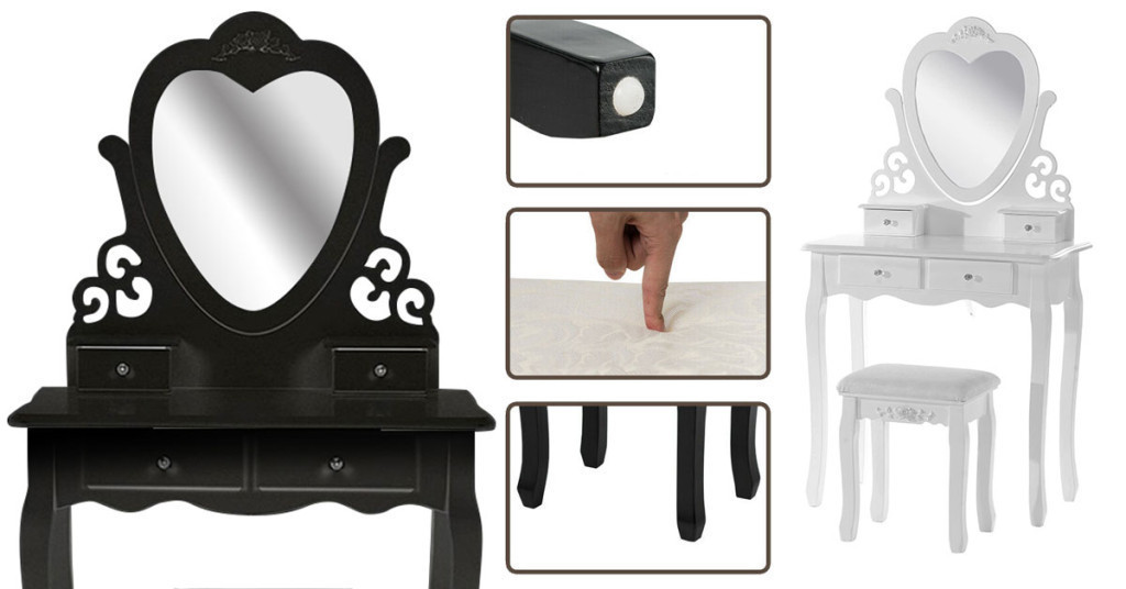 Ez a tükrös fésülködő asztal és a hozzá tartozó párnázott szék tökéletes választás bármely szalon elegáns kiegészítőjeként. A levehető felsőrész és a domború díszítések klasszikus megjelenést és sokoldalú használatot biztosítanak.