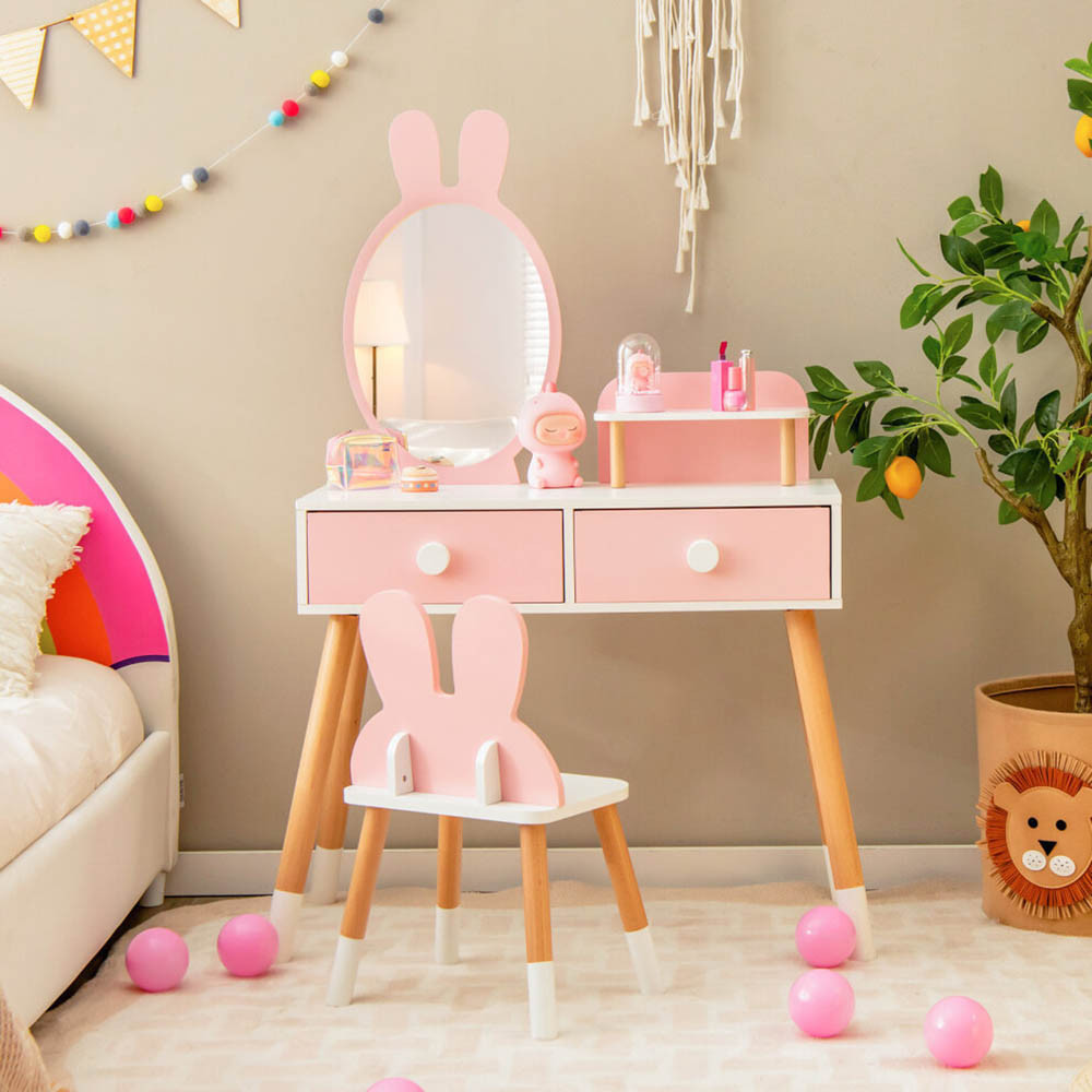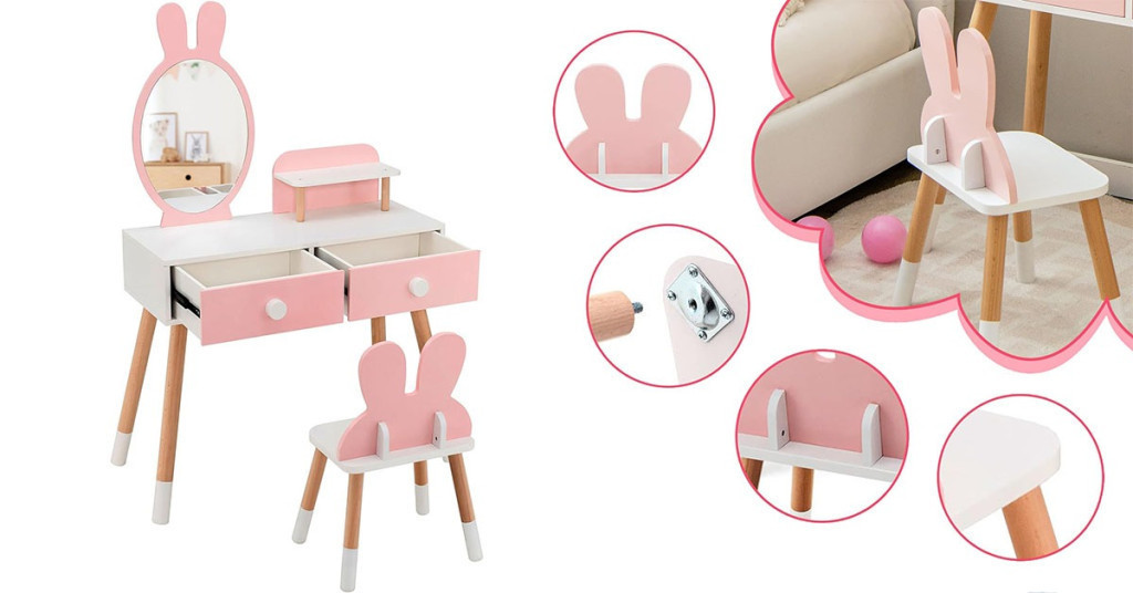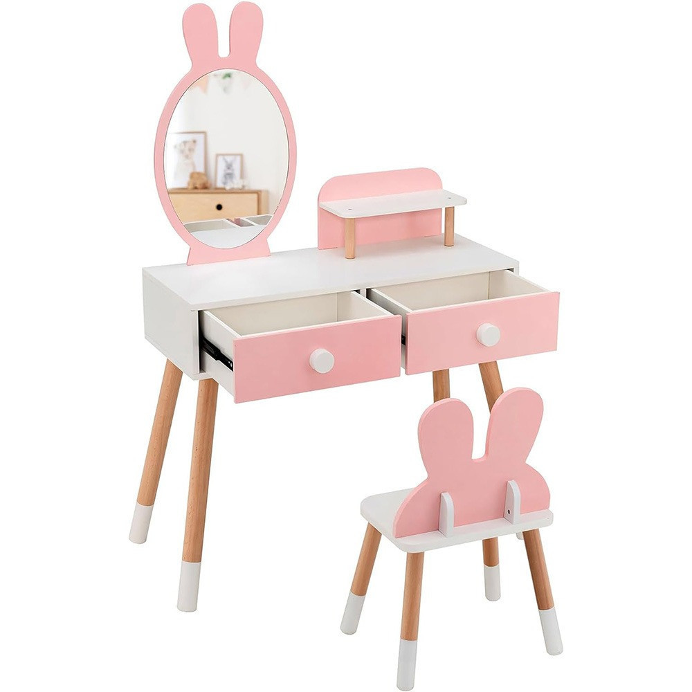 Timeless Beauty Nyuszis fésülködő asztal gyerekeknek tükörrel, székkel (HOP1001563)
