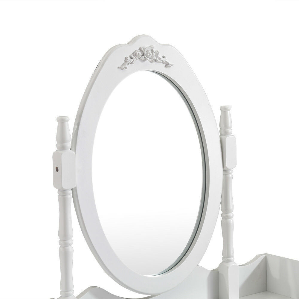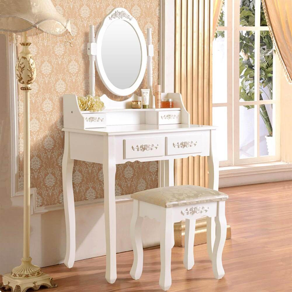 Az ovális tükör ideális sminkeléshez és frizurakészítéshez, megfelelő mérete miatt teljes képet ad az arcodról. Az asztallap tágas, így további tárolóhelyet is biztosít a leggyakrabban használt kozmetikai termékeknek.