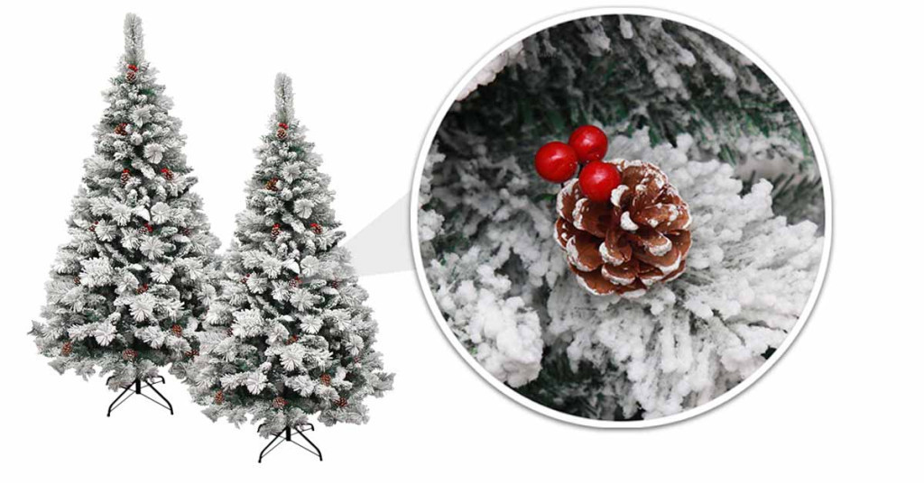 A sűrű ágak és a finoman elhelyezett hóhatás igazi téli csodavilágot teremt az otthonodban. A tobozok és magyal bogyók természetes díszítése tovább fokozza a fa élethű megjelenését.