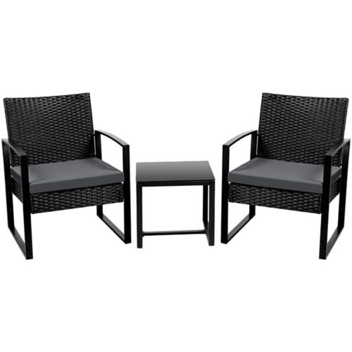 Élvezd a pihenés örömét a 2 személyes, rattan hatású kültéri bútorszettel! Az időjárásálló anyagból készült székek kényelmes, vastag párnákkal és széles karfákkal garantálják a maximális komfortot, míg a kompakt, edzett üveglapos dohányzóasztal praktikus megoldást nyújt italok és kiegészítők számára. Modern, elegáns dizájnjával ez a szett tökéletesen illik kisebb teraszokra és erkélyekre, stílusos kényelmet teremtve.