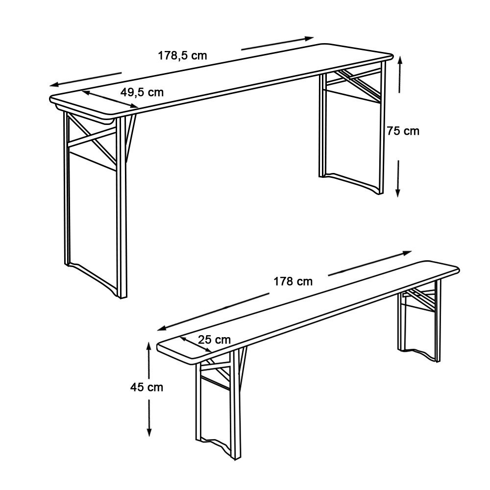 Hozd össze barátaidat és családodat ezzel a 3 részes fa sörpad szettel! Masszív fa felülete és strapabíró acélváza garantálja a hosszú élettartamot, miközben kényelmes helyet biztosít akár 6 fő számára. Könnyen összecsukható kialakítása praktikus szállítást és tárolást tesz lehetővé, így ideális választás kerti partikhoz, piknikekhez vagy bármilyen szabadtéri eseményhez.
