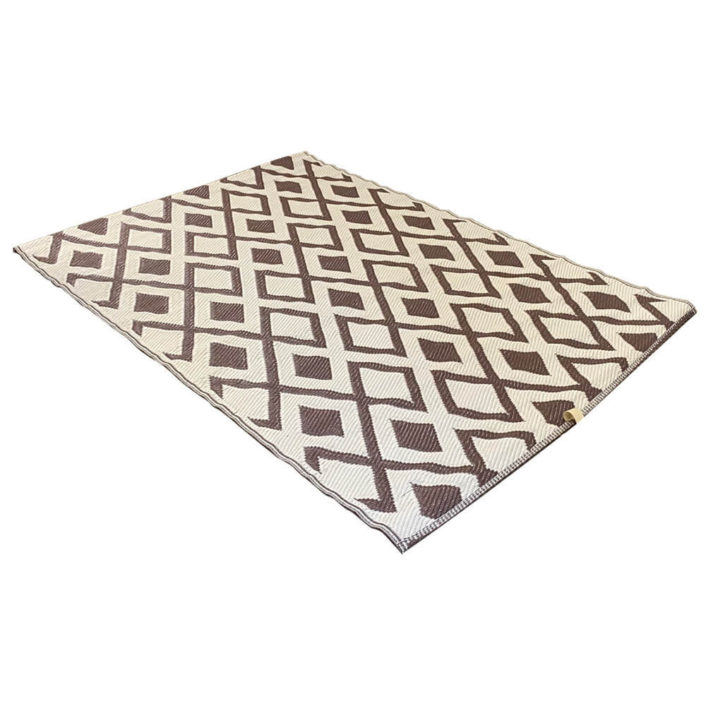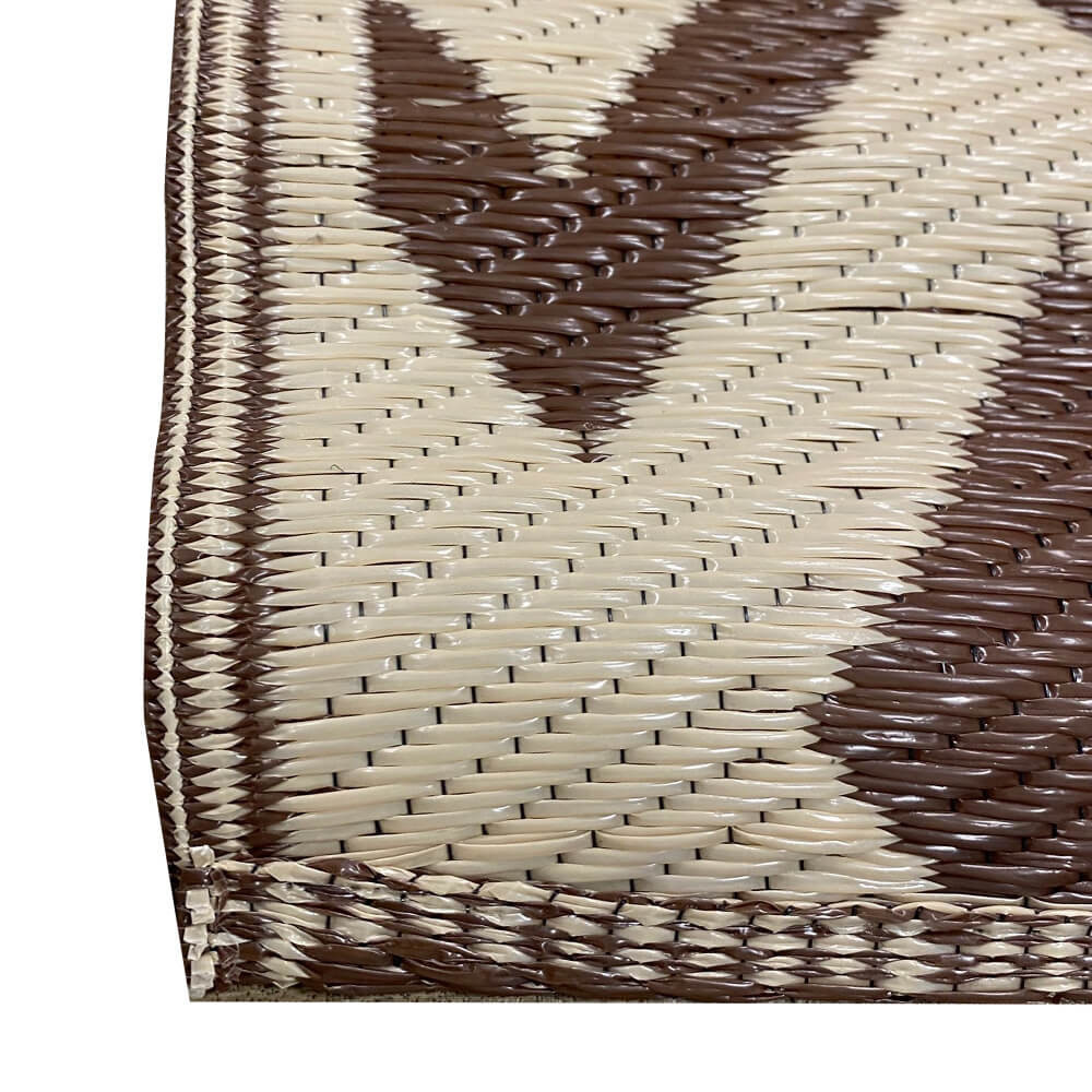 Ez a barna kültéri szőnyeg kellemes, mediterrán megjelenést ad teraszodnak vagy erkélyednek. Kiválóan illeszkedik bármelyik kültéri környezetbe, legyen szó reggeli kávézásról, vendégfogadásról vagy pihenésről a kertben.