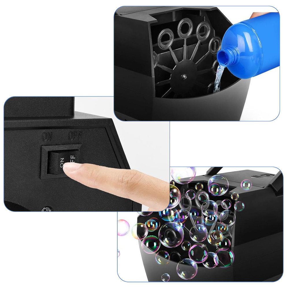 A készülék könnyen használható – csak töltsd fel folyékony szappanos vízzel, csatlakoztasd egy USB porthoz, és már indulhat is a buboréközön! Csendes működésének köszönhetően zavartalan élményt nyújt, így bármilyen rendezvényen ideális kiegészítő lehet.