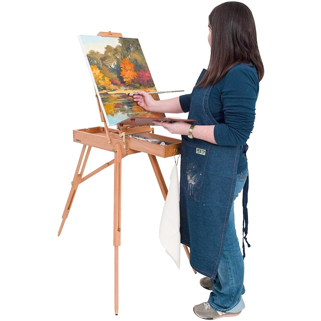 Ez a fából készült, háromlábú festőállvány tökéletes eszköz kezdő és haladó művészek számára. Rajzolásra és festésre egyaránt alkalmas, könnyen összeszerelhető, összecsukható és kényelmesen hordozható. Kézben vihető vagy vállpánt segítségével vállra akasztható, így bárhol alkothatsz, legyen szó otthoni kreatív időtöltésről vagy szabadtéri festésről.