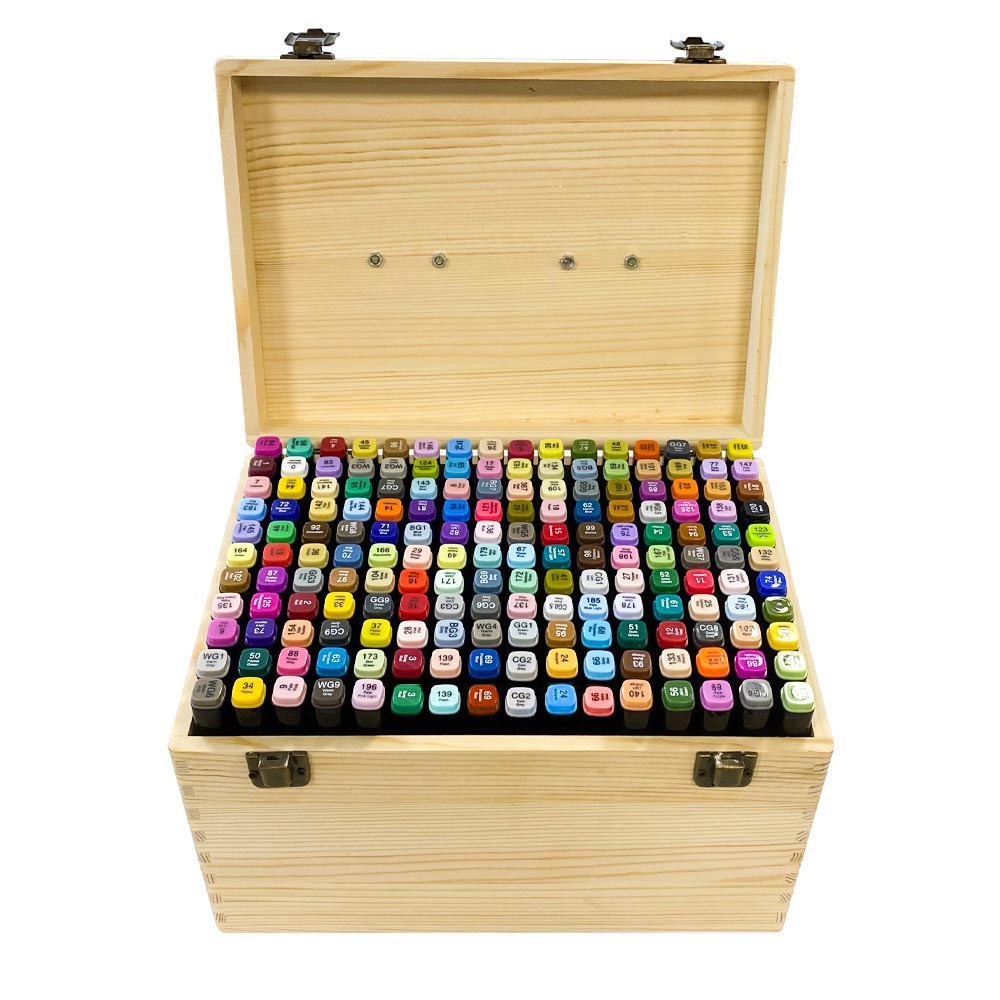 A színek véletlenszerűen kerülnek a dobozba, a kép csak illusztráció!Ez a prémium minőségű, 176 darabos alkoholos marker készlet tökéletes választás művészek, illusztrátorok, tervezők és hobbi rajzolók számára. A kétvégű kialakítás lehetővé teszi a precíz vonalvezetést és a nagyobb felületek gyors színezését egyaránt. A készlet egy elegáns, masszív fadobozban érkezik, amely nemcsak esztétikus, hanem biztosítja a markerek rendszerezett és biztonságos tárolását is.
