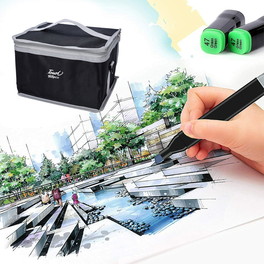 Engedd szabadjára a kreativitásodat! Rajzolás, tervezés vagy színezés – legyen szó bármilyen kreatív tevékenységről, ezzel a 168 darabos kétoldalas marker készlettel mindig lenyűgöző alkotásokat hozhatsz létre. Az élénk, intenzív színek inspirálnak, míg a kétféle hegyszélesség precíz vonalvezetést biztosít. A praktikus hordtáska lehetővé teszi, hogy bárhová magaddal vidd ezt a sokoldalú készletet, legyen szó iskoláról, irodáról vagy otthoni alkotásról.