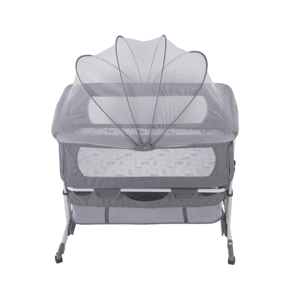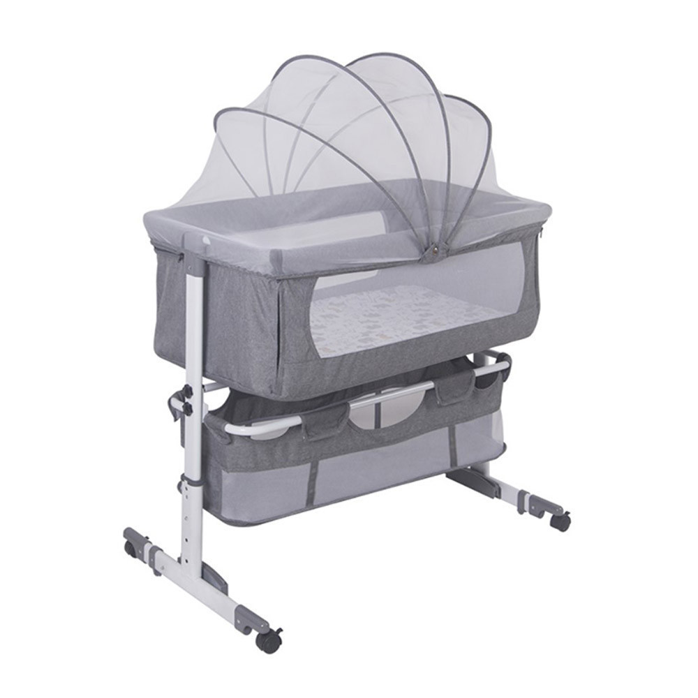 A babaöböl 4 különböző magasságban állítható, így tökéletesen illeszthető bármilyen ágy mellé. A rögzítő szíj biztosítja, hogy a babaöböl stabilan rögzüljön, míg a lenyitható oldal lehetővé teszi a könnyű hozzáférést a babához. Az éjszakai ringatás érdekében a hátsó lábak kihajthatók, így a baba megnyugtató mozgást élvezhet.