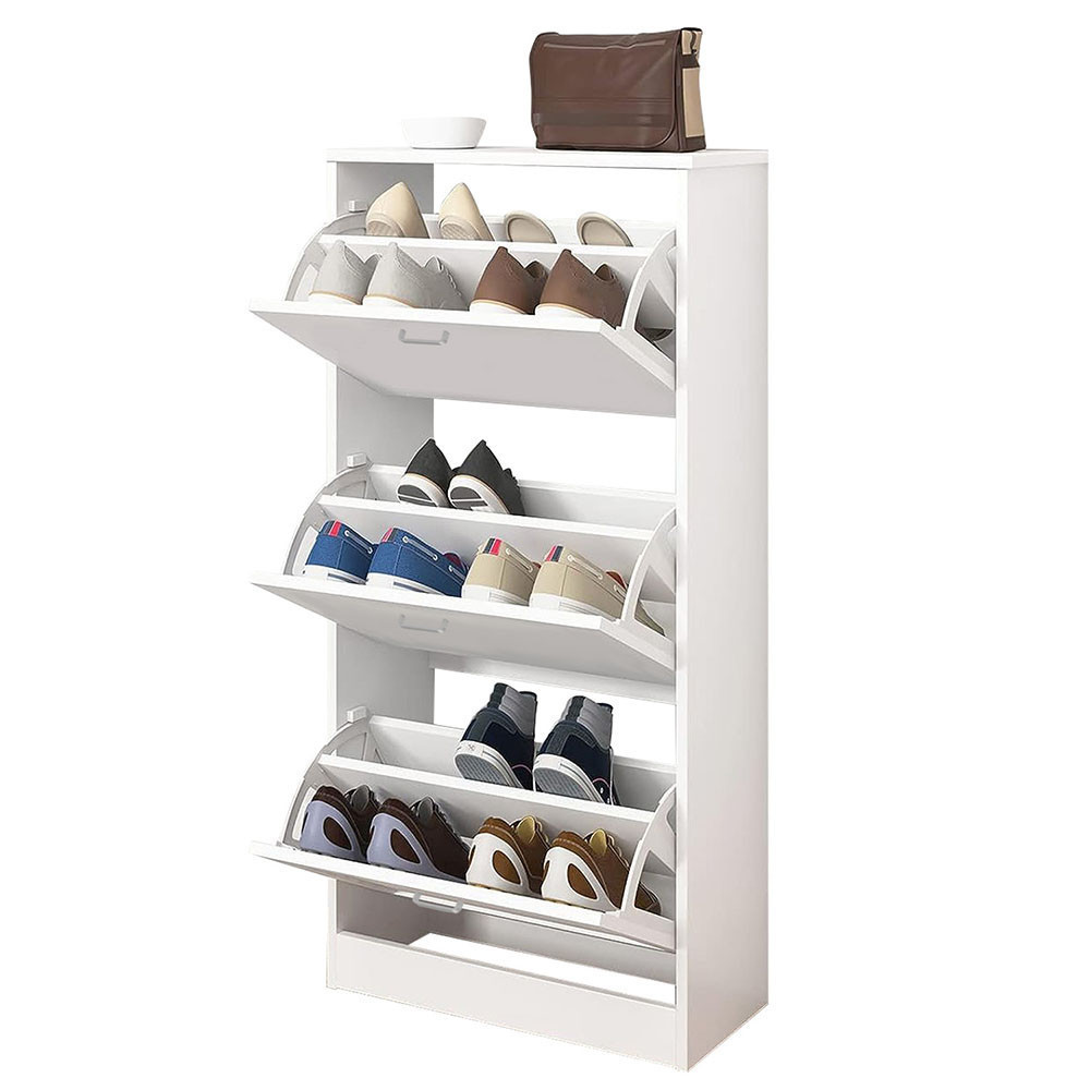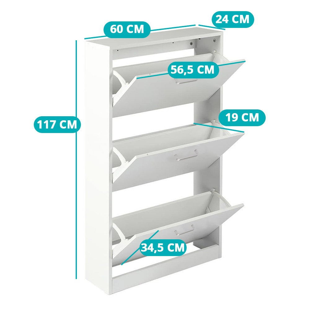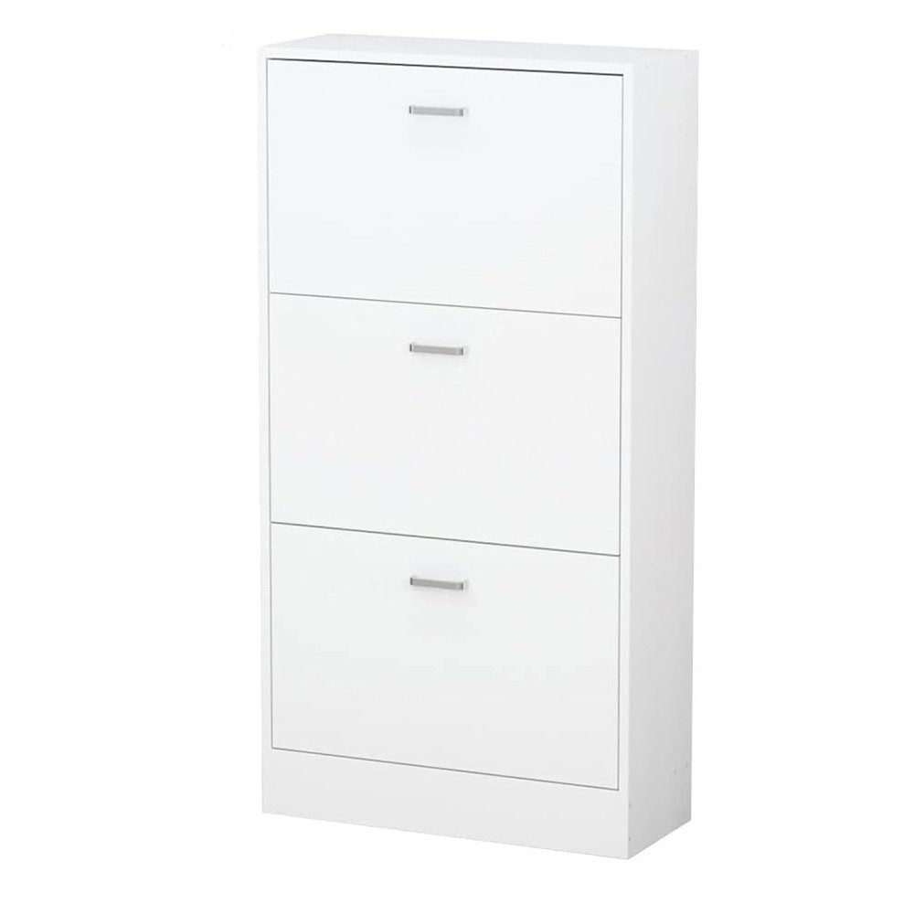 Rendezd cipőidet elegáns stílusban ezzel a modern, 3 részes cipősszekrénnyel! Letisztult fehér dizájnja bármilyen térbe illik, míg keskeny és helytakarékos kialakítása garantálja, hogy kis helyen is elférjen. Praktikus, családbarát megoldás az előszobába, irodába vagy közlekedőbe, miközben tetején dekorációkat is elhelyezhetsz.