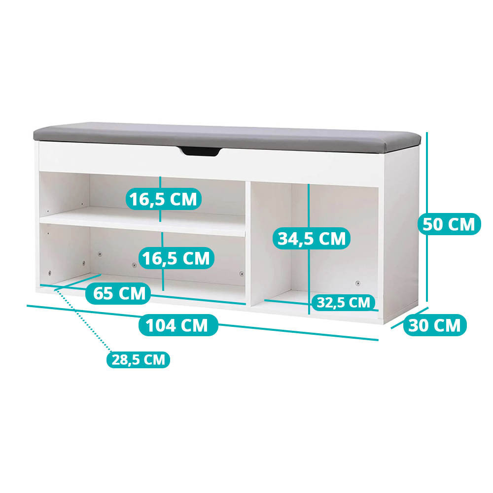 Ez a párnázott cipőtároló pad tökéletes megoldás, ha helytakarékosan szeretnéd tárolni cipőidet, miközben kényelmes ülőhelyet biztosít a mindennapi használathoz. Stabil szerkezete és praktikus kialakítása révén nemcsak praktikus, hanem stílusos kiegészítője is lehet otthonodnak. Tágas tárolóhelyeinek és modern dizájnjának köszönhetően tökéletes választás előszobákba vagy lakásod bármely helyiségébe.