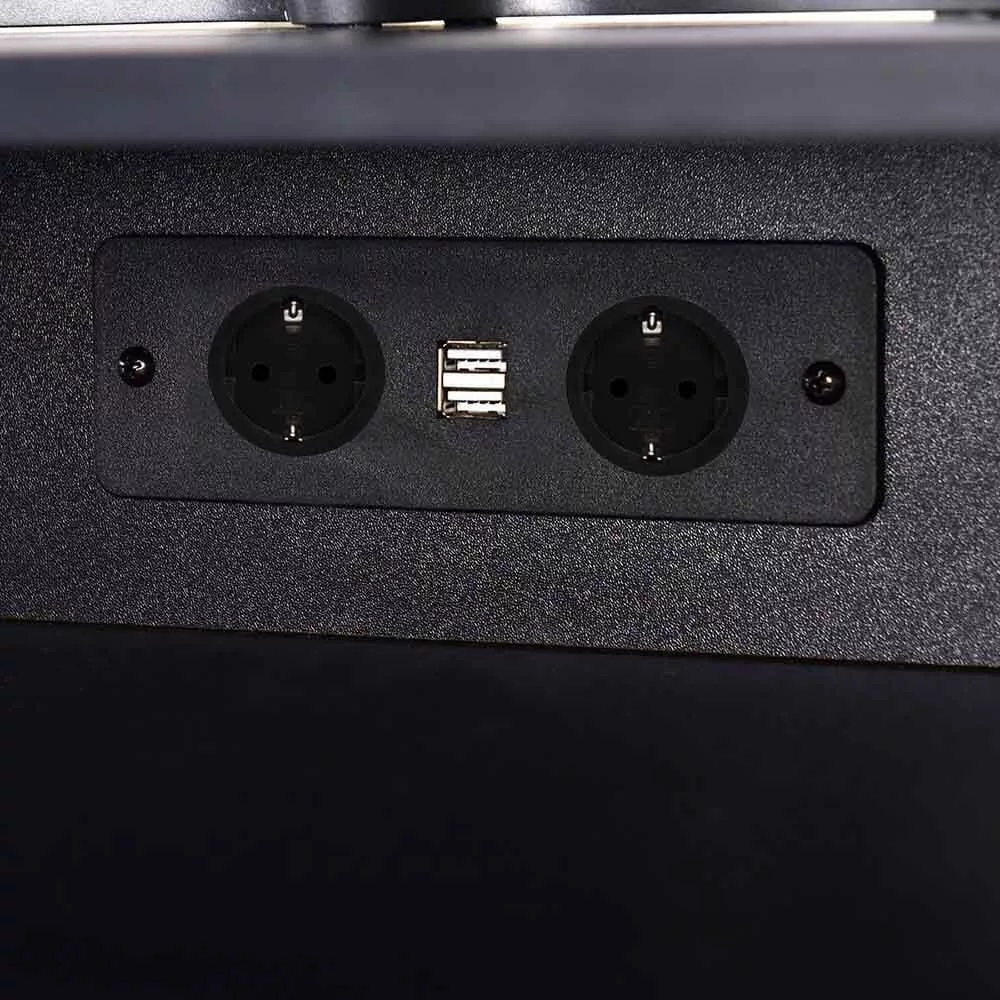 Nem kell többé hosszabbítók és adapterek után kutatnod! Az asztal hátsó paneljébe 2 db hálózati és 2 db USB csatlakozó került beépítésre, amelyeket egy 175 cm hosszú kábellel csatlakoztathatsz az aljzathoz. Ez biztosítja, hogy eszközeid mindig töltve legyenek és készen álljanak a következő játékra.
