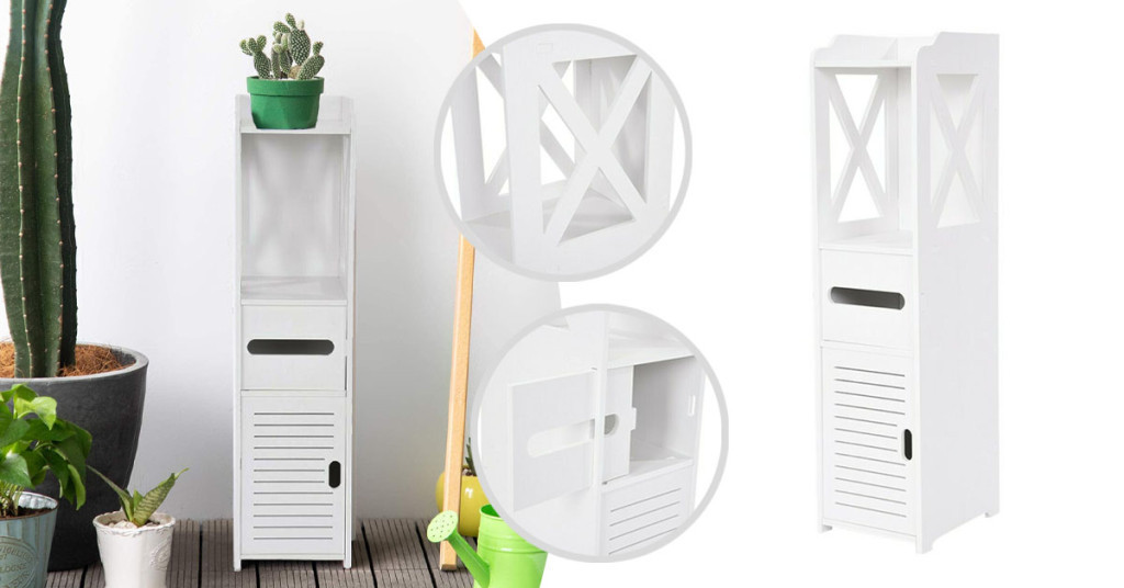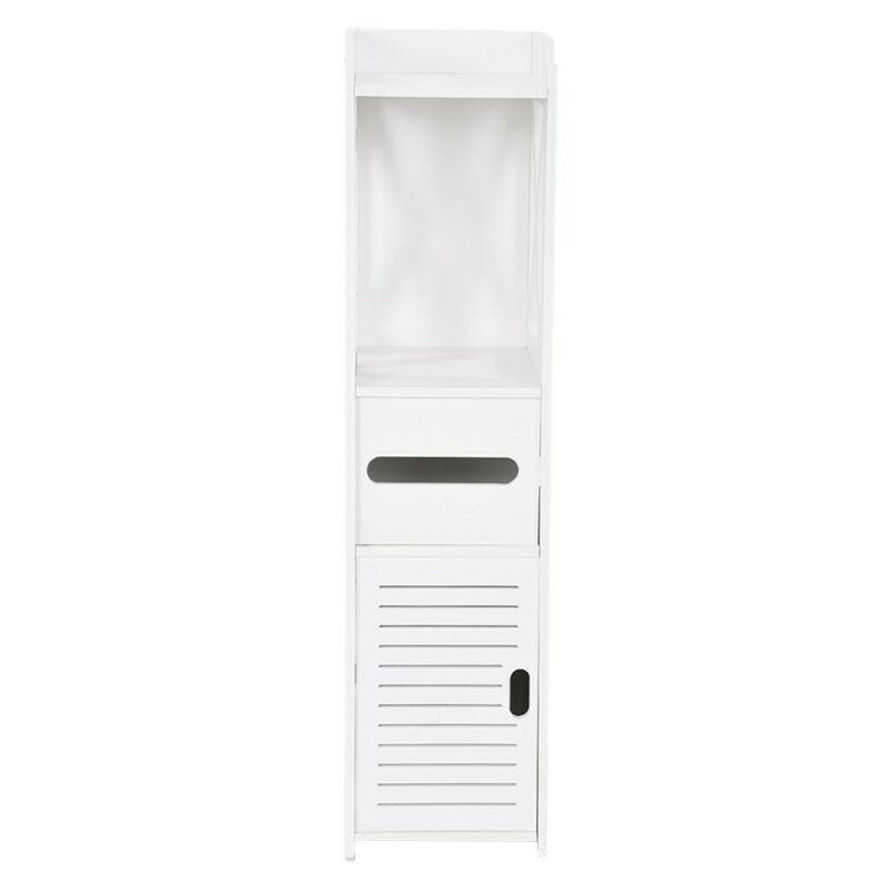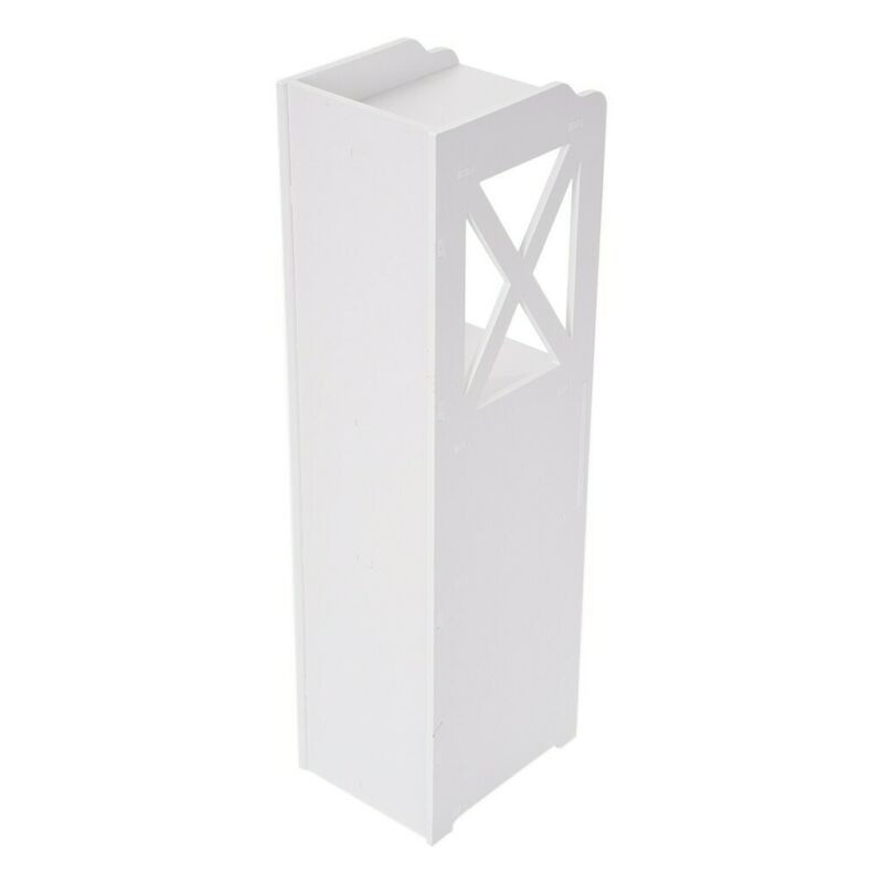 A keskeny fürdőszobai szekrény ideális megoldás kisebb helyiségek tárolási problémáinak megoldására. Három polccal és egy wc-papír tartóval rendelkezik, így helytakarékos és rendszerezett tárolási lehetőséget biztosít. Letisztult formavilágával és fehér színével könnyedén illeszkedik bármilyen fürdőszoba vagy akár más helyiség stílusához.