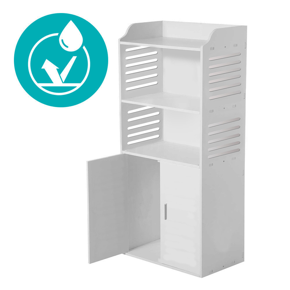 Ez a könnyű szerkezetű, kompakt méretű fürdőszobai rendező szekrény ideális kisebb helyiségekbe is. Letisztult formavilága bármilyen stílusba beilleszthető, a párának ellenálló anyaga pedig tartós használatot garantál. Könnyen összeszerelhető és praktikus tárolómegoldást nyújt.