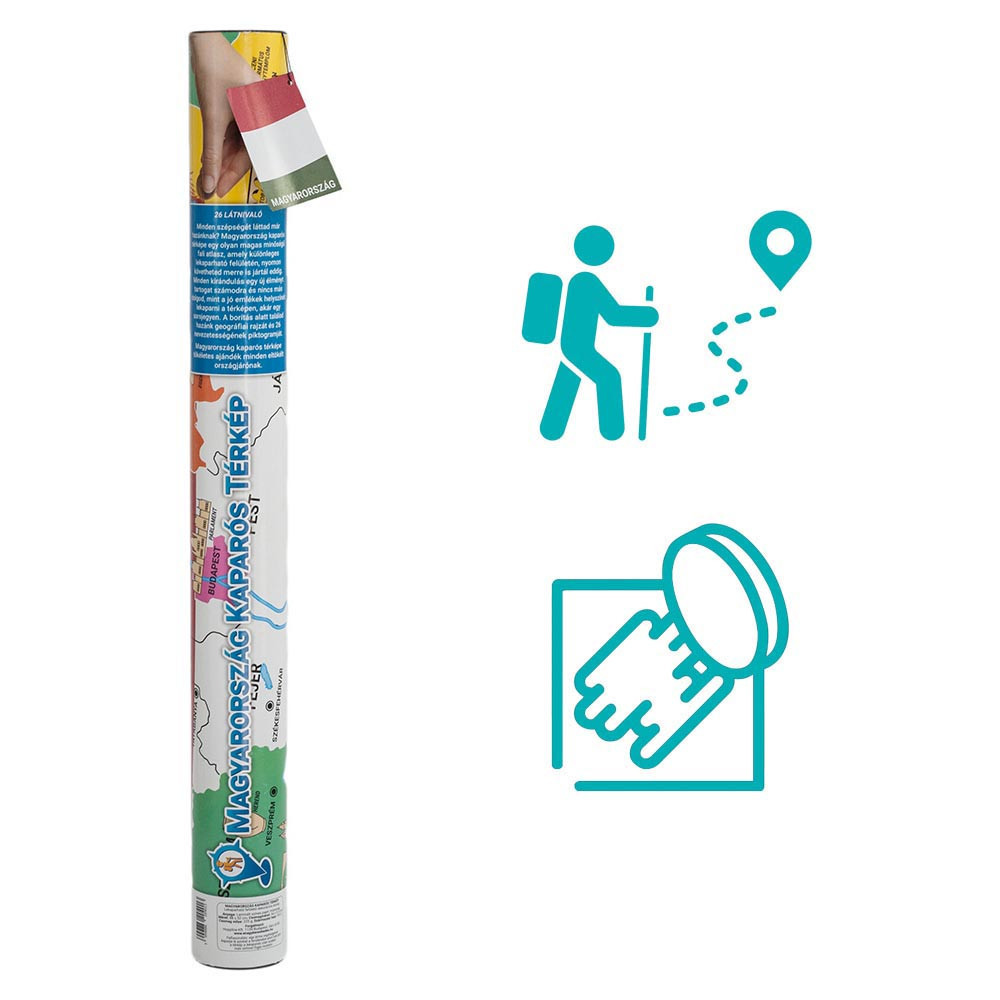 Fedezd fel újra Magyarországot a kaparós térképpel, mely színes felületeivel és egyedi piktogramjaival teszi élvezetessé a túrák dokumentálását. Minden egyes lekapart hely egy emlék, ami örökre megmarad. Ideális eszköz arra, hogy az országjárás különleges és személyes nyomot hagyjon otthonod falán is.