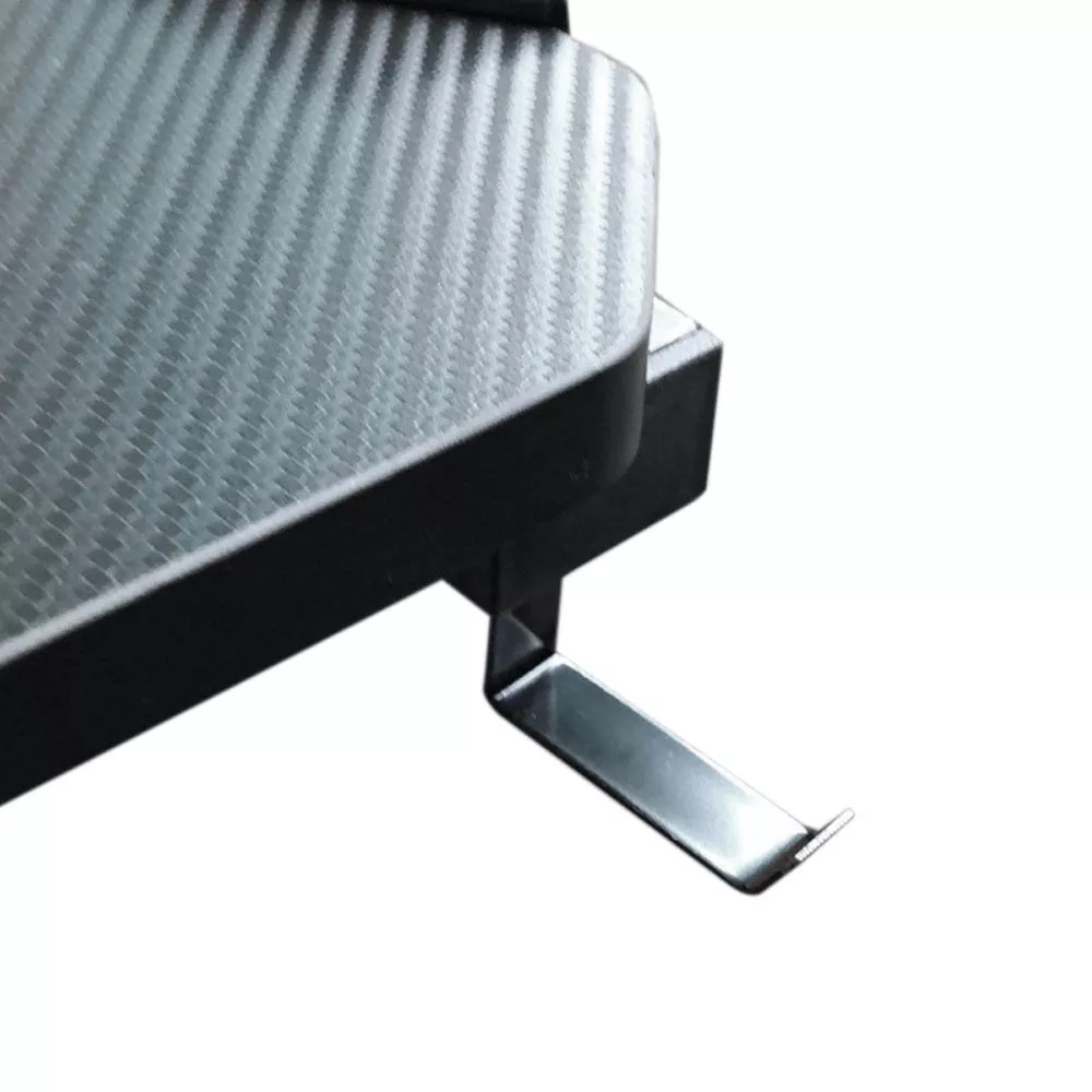 A karbonszálas textúrájú asztallap nemcsak stílusos, hanem praktikus is. A felület egérpadként is használható, így pontosabb mozdulatokat tesz lehetővé a játék során. Az anyag ellenáll a karcolásoknak és könnyen tisztítható, így hosszú távon is megőrzi minőségét.