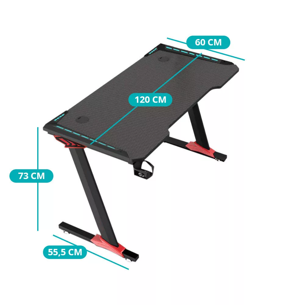 Timeless Home Professzionális gamer asztal karbonszálas bevonattal, LED világítással (HOP1001309)