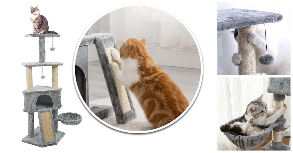 A kaparó oszlopok és az alsó kaparófa strapabíróak, és hosszú távon ellenállnak a rendszeres használatnak. Így nemcsak cicád igényeit elégíti ki, hanem megóvja bútorodat a karmolásoktól. A szolid szürke szín harmonikusan illeszkedik bármely otthoni környezethez.