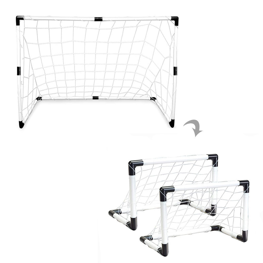 A focikapu szett különleges kialakítása lehetővé teszi, hogy egy nagy méretű kaput (112x77x50 cm) vagy két kisebb kaput (59x41x28 cm) állíts össze. Ideális megoldás, ha változó számú játékossal szeretnétek játszani, vagy kisebb helyen kell elférni.