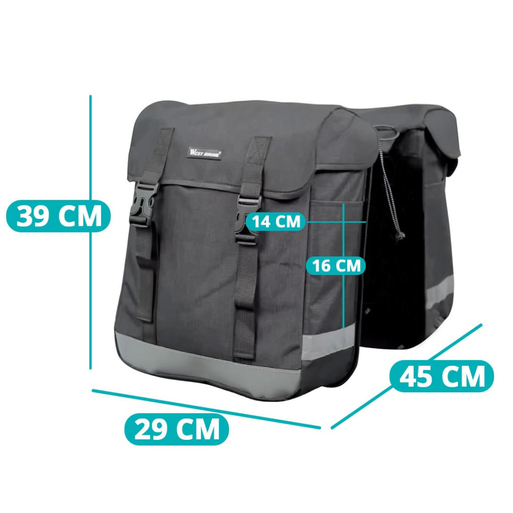 Ez a kétoldalas bicikli kerékpártáska ideális választás túrákhoz vagy városi használathoz. A 33 literes űrtartalom, a vízálló bevonat és a fényvisszaverő szalagok praktikus és biztonságos megoldást kínálnak, ha sok holmit kell magaddal vinned. Könnyen rögzíthető, jól pakolható, mégis könnyű.