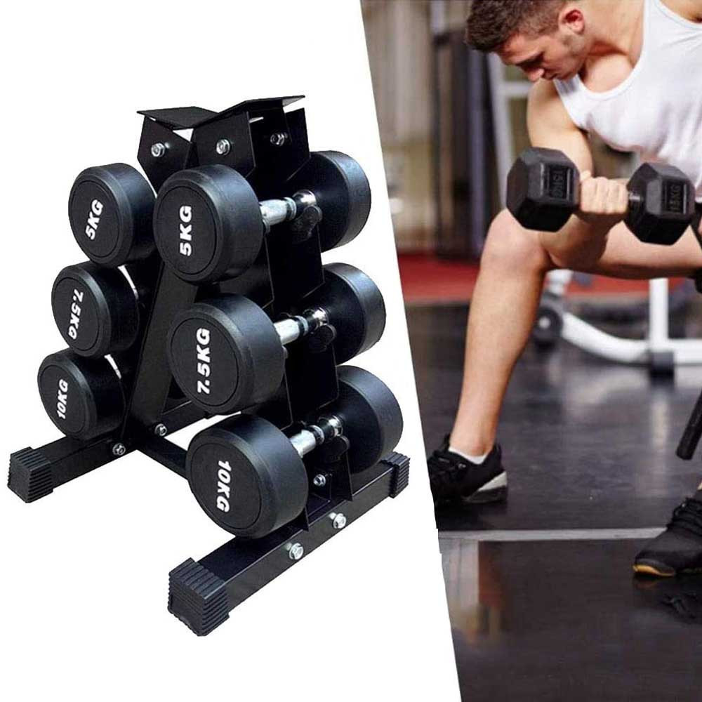 A súlyzótartó állvány praktikus és masszív megoldás a súlyzók tárolására. Három pár súlyzó tárolására alkalmas, és akár 120 kg-ig terhelhető, így tökéletes választás otthoni vagy edzőtermi használatra. Stabil kialakításának és gumitalpainak köszönhetően óvja a padlót, miközben helytakarékos tárolást biztosít.